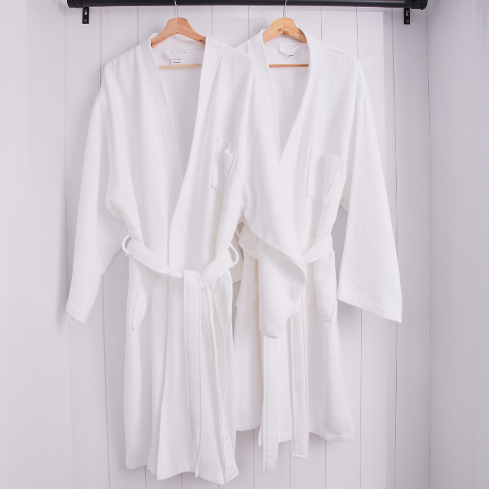 Bata Waffle Afelpado Blanco 100% Algodón