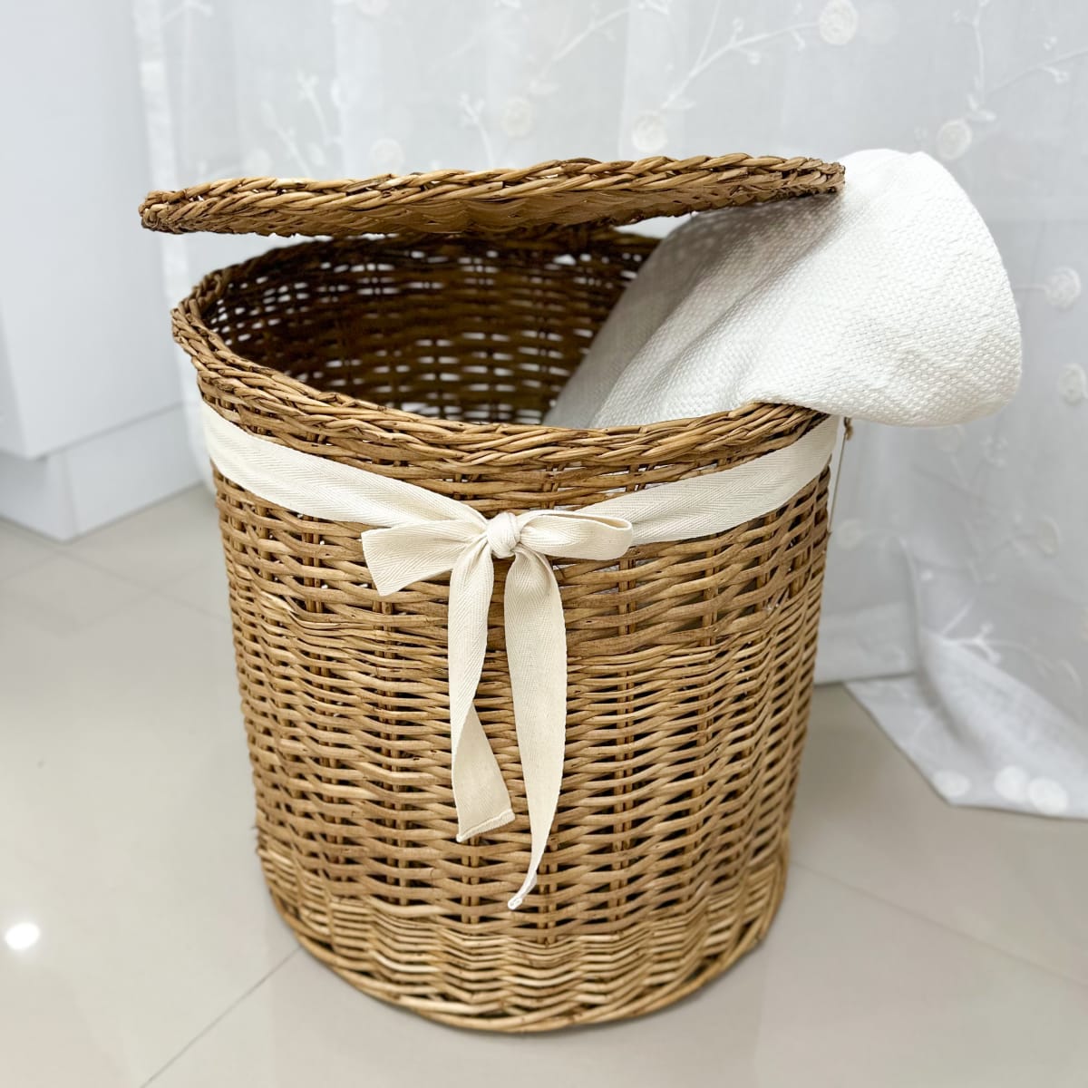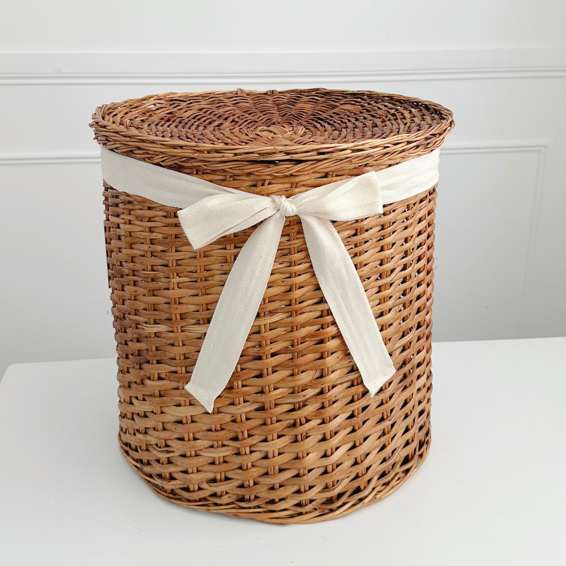 Incluye: 1 Cesto con tapa + 1 lazo de cinta de algodón Premium