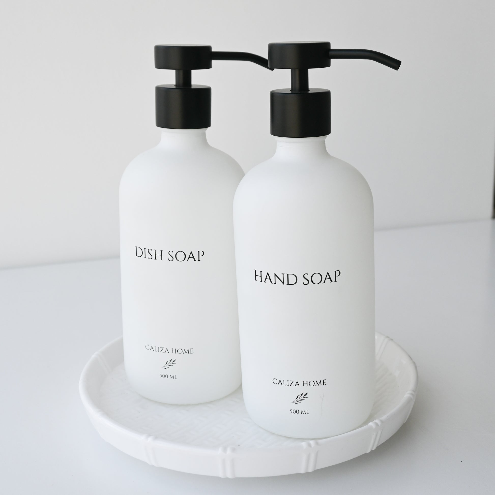Este pack de dos dispensadores incluye tanto Hand Soap como Dish Soap para mantener tus manos y platos limpios y libres de bacterias.